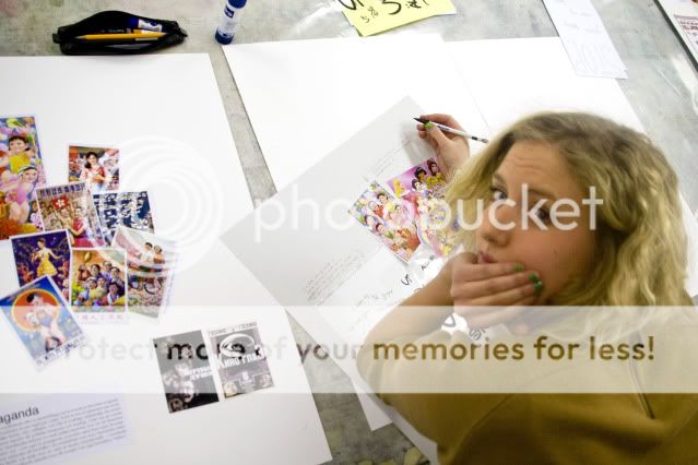 att göra en propagandaaffisch och sedan presentera arbetet med hjälp av skisser, inspiration och en en färdig